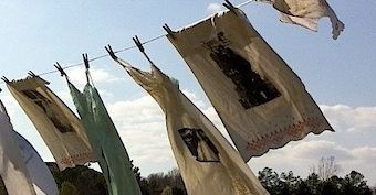In 2011 I moved forward with an artwork I call, Heirlooms & Artifacts of Our Mother’s and Grandmother’s. Just back from Israel and a missions trip to Guatemala, I realized how much I missed clotheslines. My grandmother, Virgie Marie Ross would hang sheets and all of our clothing on the line to dry, while my sister and I played hide and seek. It was joy!